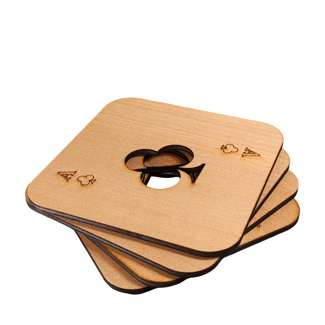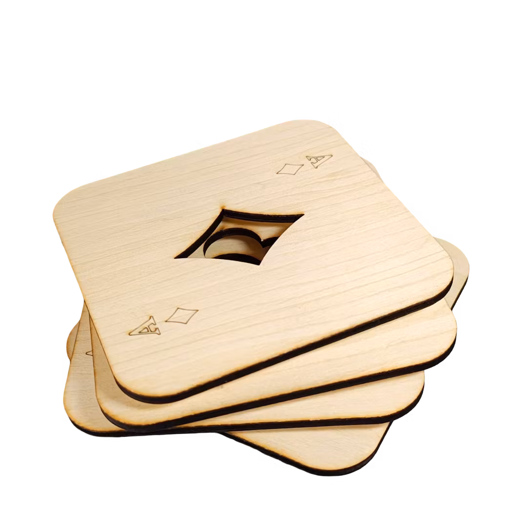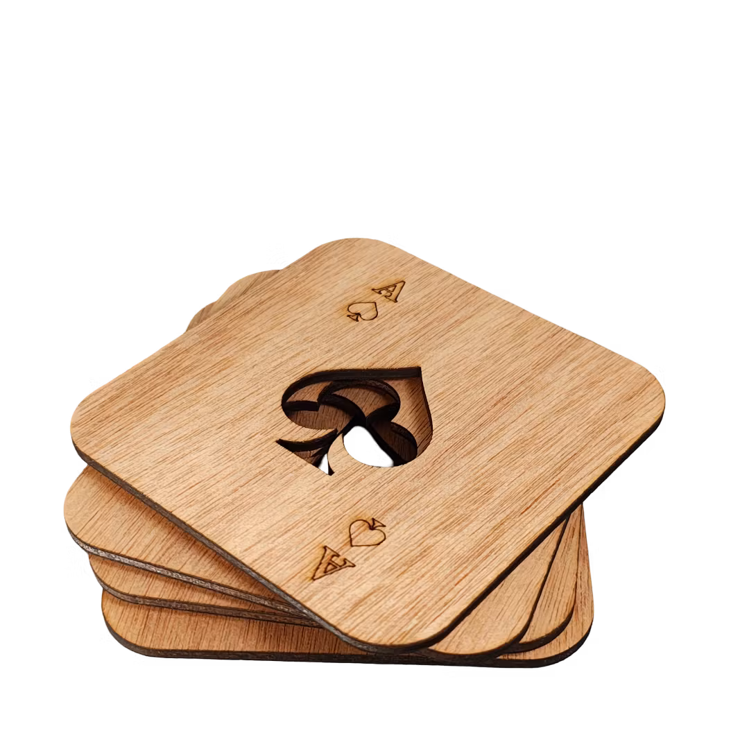 Dryckesunderlägg Kortlek (4-pack) – För den stilmedvetna kortspelarenUpptäck elegansen i varje spelkväll med våra unika dryckesunderlägg i trä.Välkommen till en